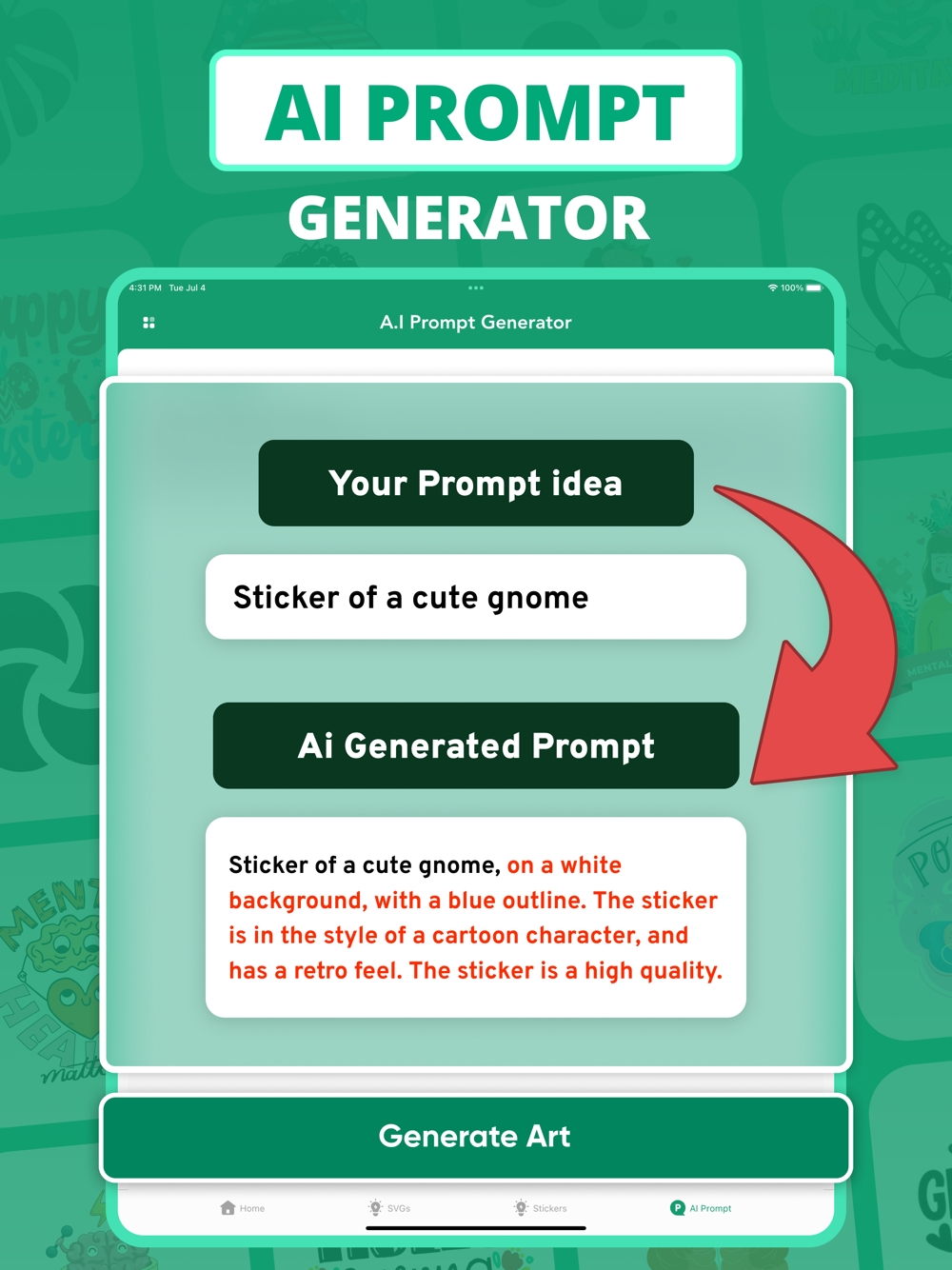 Experience the future of crafting with our app's AI module, revolutionizing the way you design. Generate unique and personalized creations with ease, thanks to the seamless integration of AI technology. Whether you're a novice or an experienced crafter, our app guides you through the process, bringing your ideas to life in a matter of moments.