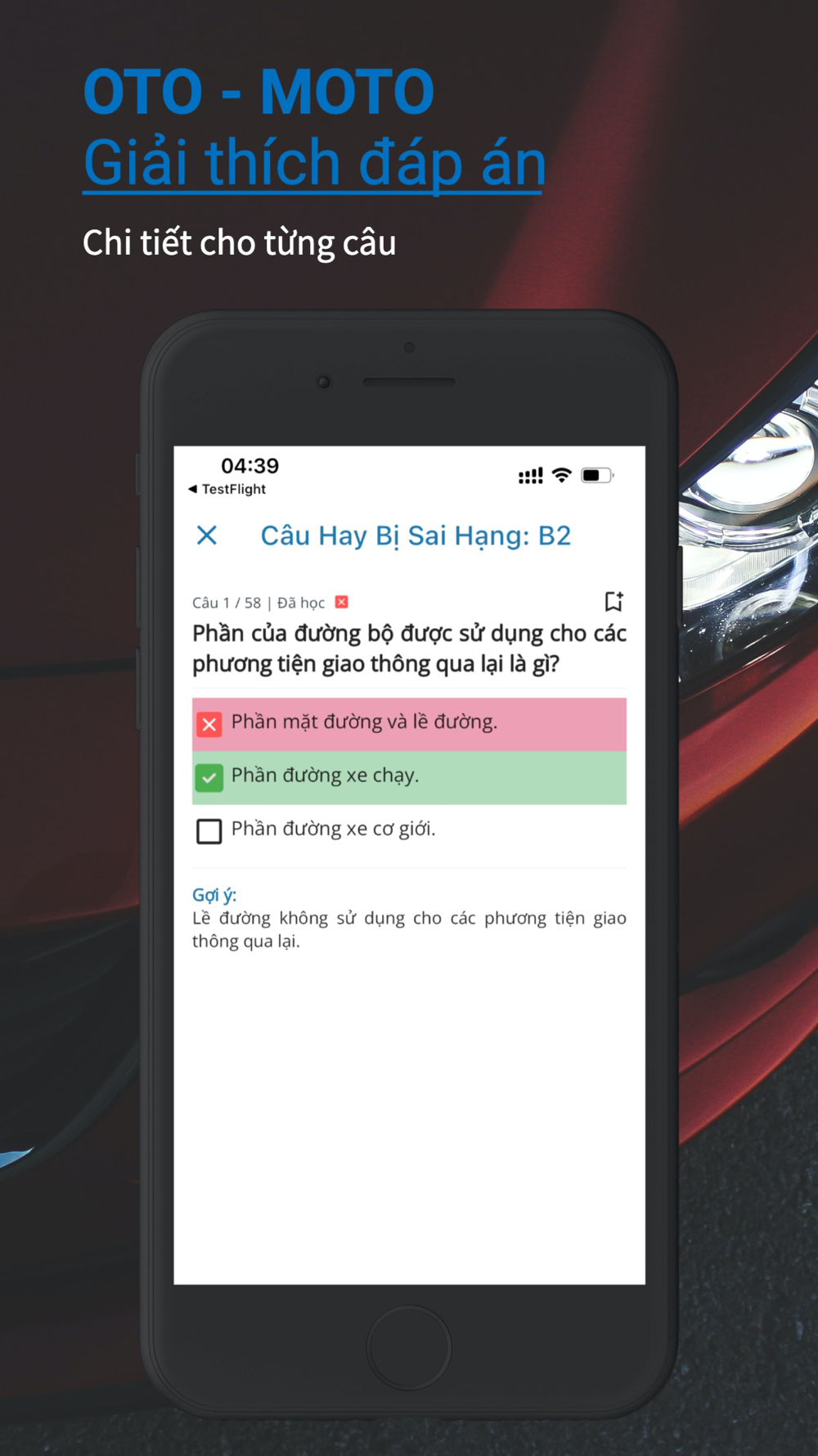 - Xem và học danh sách các câu hỏi thường bị sai. Danh sách này được tổng hợp từ kết quả ôn thi của hơn 1 triệu người dùng đã sử dụng.