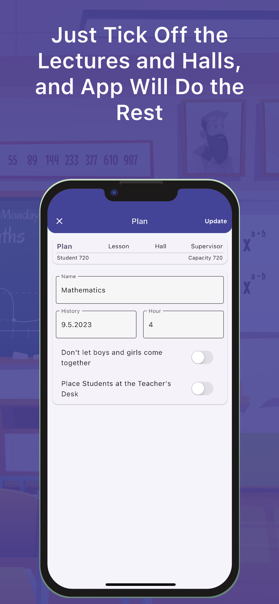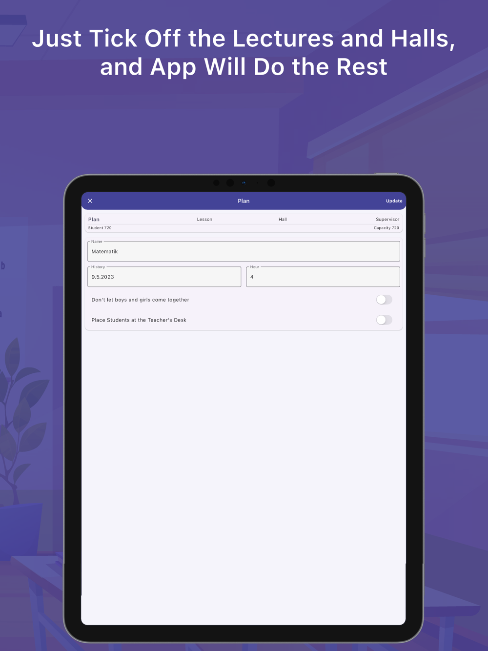 When you want to create a new plan, just click on the classes and halls and press the OK button. Seating plan is created instantly