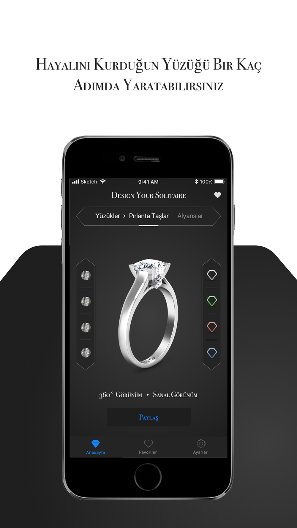 Bir hediye hayal edin! Sahibine özel olarak hazırlansın! "Çok güzel de, peki nasıl olacak?" dediğinizi duyar gibiyiz. Pırlanta Yüzük Tasarla'da sevdiklerinizi mutlu etmek artık çok daha kolay! Uygulamamız üzerinden kişiye özel ürünler tasarlama imkanı sunuyoruz. Beğendiğin ürünü özelleştir.