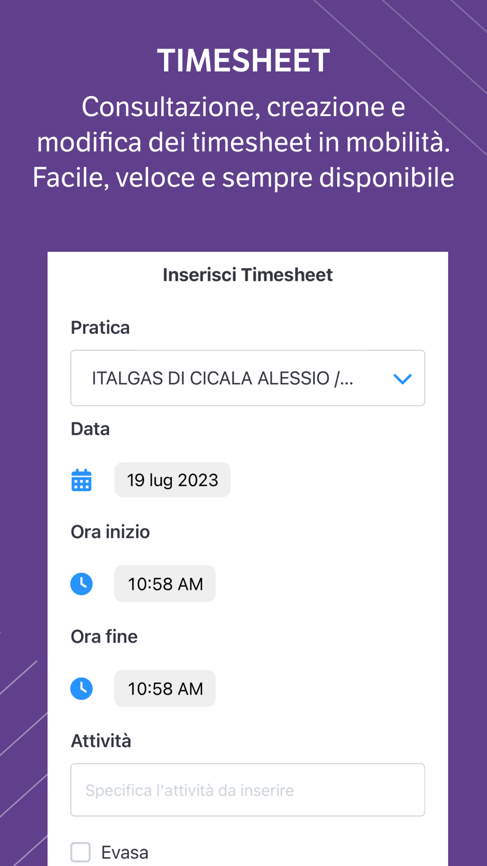 Inserimento dei timesheet sempre disponibile. Con TeamSystem Legal App i professionisti potranno correggere, monitorare e consolidare il prospetto giornaliero e settimanale in mobilità, con pochi click.