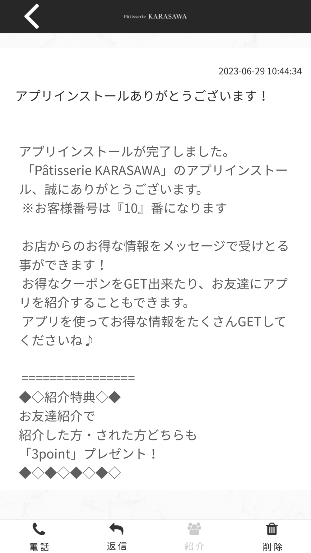 KARASAWAのアプリをSNSを通じてお友達に紹介する事ができます。