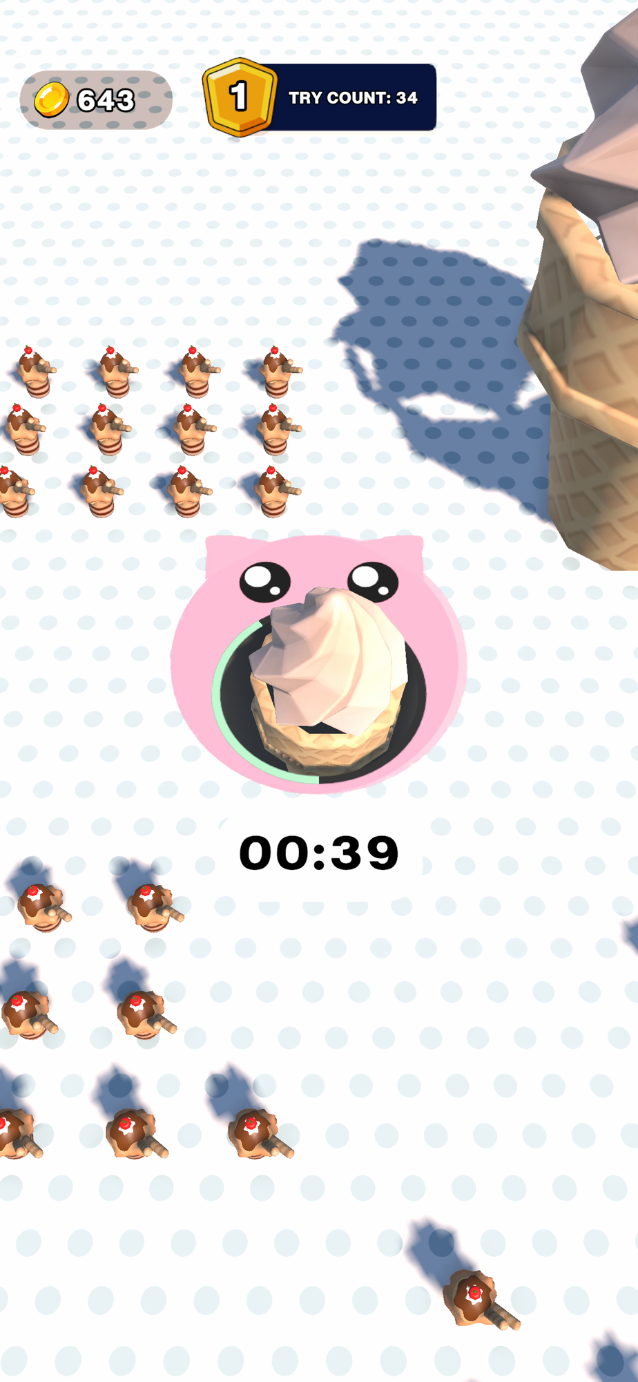 In Hole & Sweets, you control a hole that eats desserts. Your goal is to eat all of the desserts in each level before the time runs out. The more desserts you eat, the bigger your hole will become.
