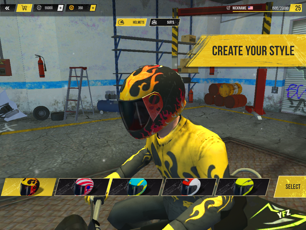 DESIGN your quad bike, upgrade its characteristics in the garage. You can create your own unique graphics, apply airbrushing and change the road number. Dress up your driver, pick up a bright helmet and a cool suit for him. Choose a yoke, bumper, spoiler, running boards, headlights dimensions and other body parts. Make graffiti on the whole body or stick stickers.