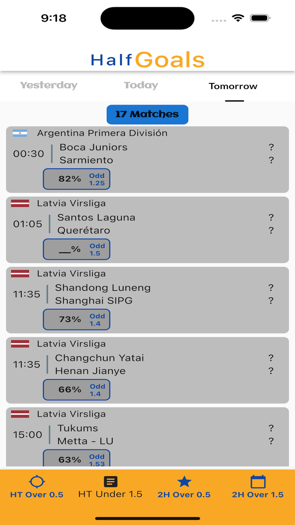 - Number of matches with more than 2.5 / less than 2.5 goals scored in a match