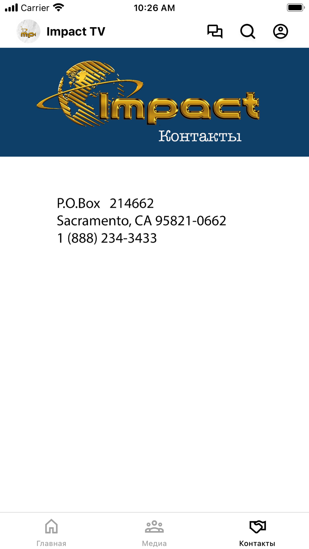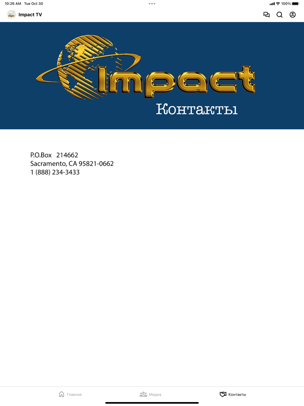 The Impact Television Network has grown from a single program "The Power of the Cross" into a 24-hour Slavic family-oriented channel in America. Impact currently broadcasts its programming from Comcast's main network, with coverage throughout the United States and major cities in the former Soviet Union. Use this app to watch previous broadcasts, interviews, and music.