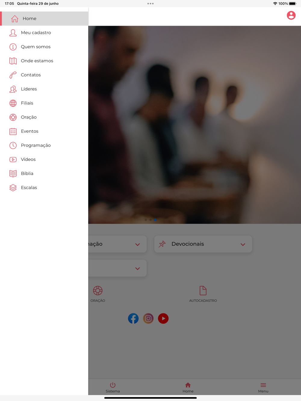 No nosso app, você receberá informações relevantes da nossa igreja, poderá se cadastrar, fazer pedidos de oração, acessar à Bíblia, ler devocionais e muito mais!