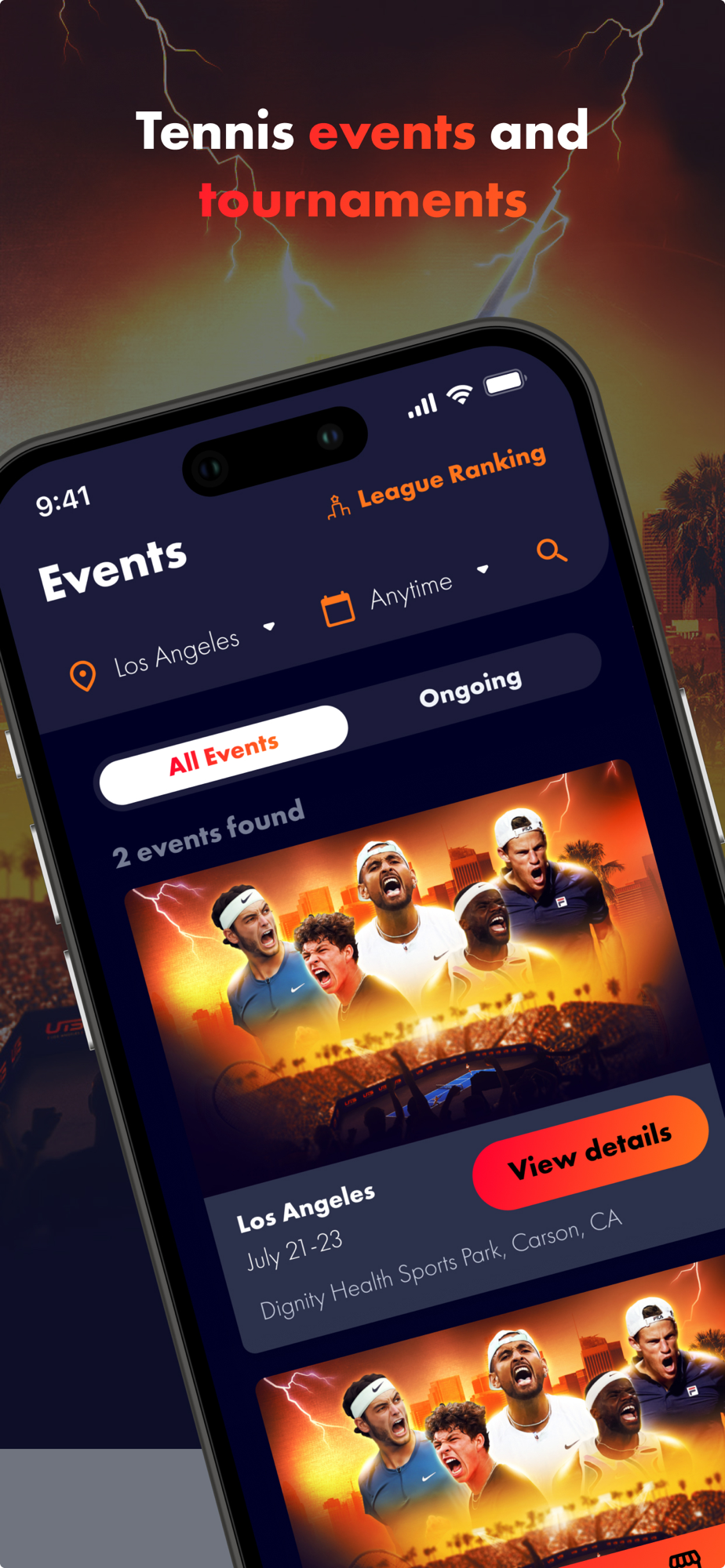 "Introducing ""Ultimate Tennis Showdown,"" the ultimate mobile app for event organizers, attendees and players. Stay up-to-date with the Tournament Schedule feature and exclusive event clips.