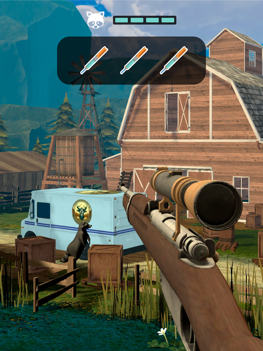 In "Dream Dart: Rescuing the Wild" you are a wildlife hero rescuing animals on the farmers' territory. Use a rifle with tranquilizer darts and a thermal scope. Detect and tranquilize animals, transport them to a safe distance, and set them free. Overcome levels with different animals and challenges. Become a nature defender in "Dream Dart: Rescuing the Wild"!