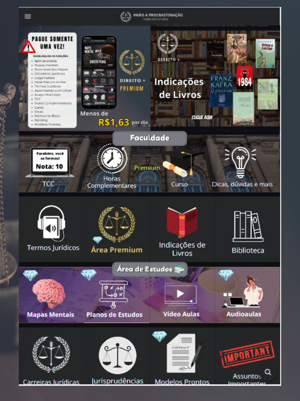 A plataforma visa ferramentas onde serão de grande participação ao conteudo juridico.