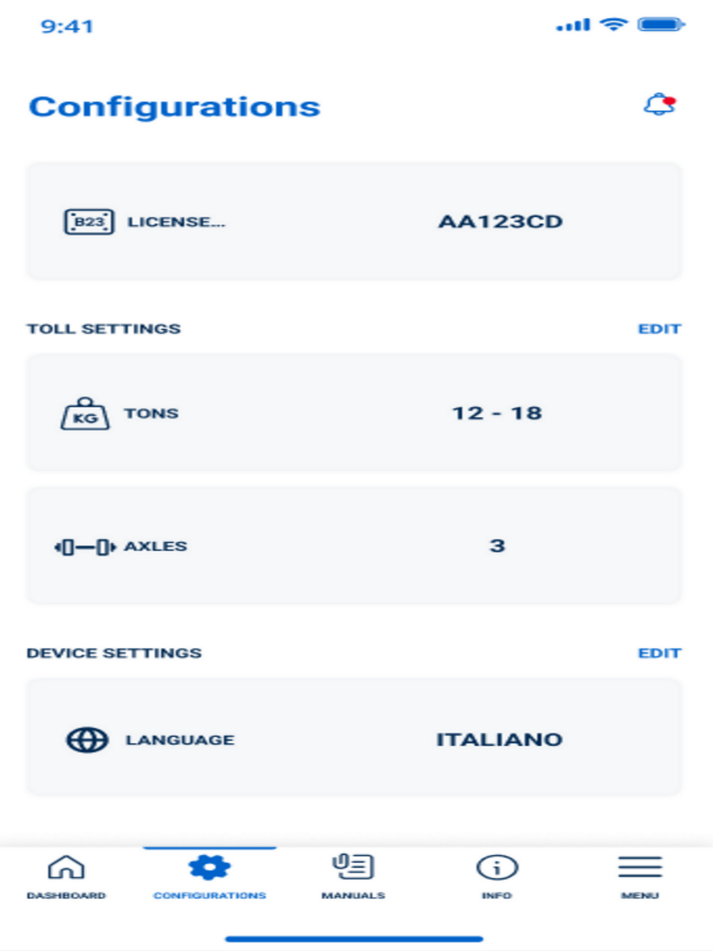The truck driver can easily and quickly update axles and the weight category. Thanks to the push notification system (s)he will receive real-time notifications about each update made using the APP or the Tollbox.