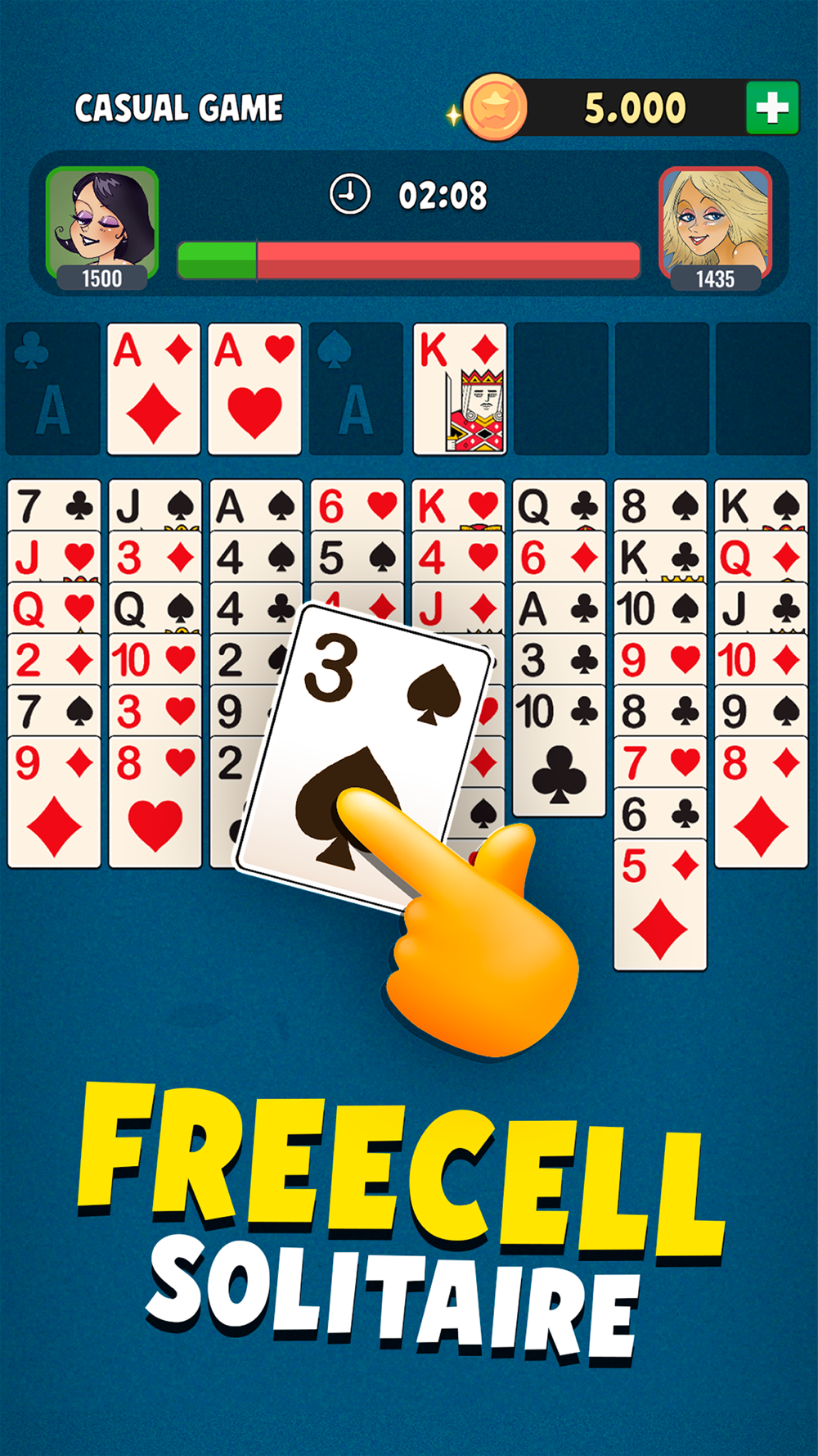 You can play against random opponents or with your friends. If you´ve never tried it before playing the freecell solitaire multiplayer feels like a whole new game.