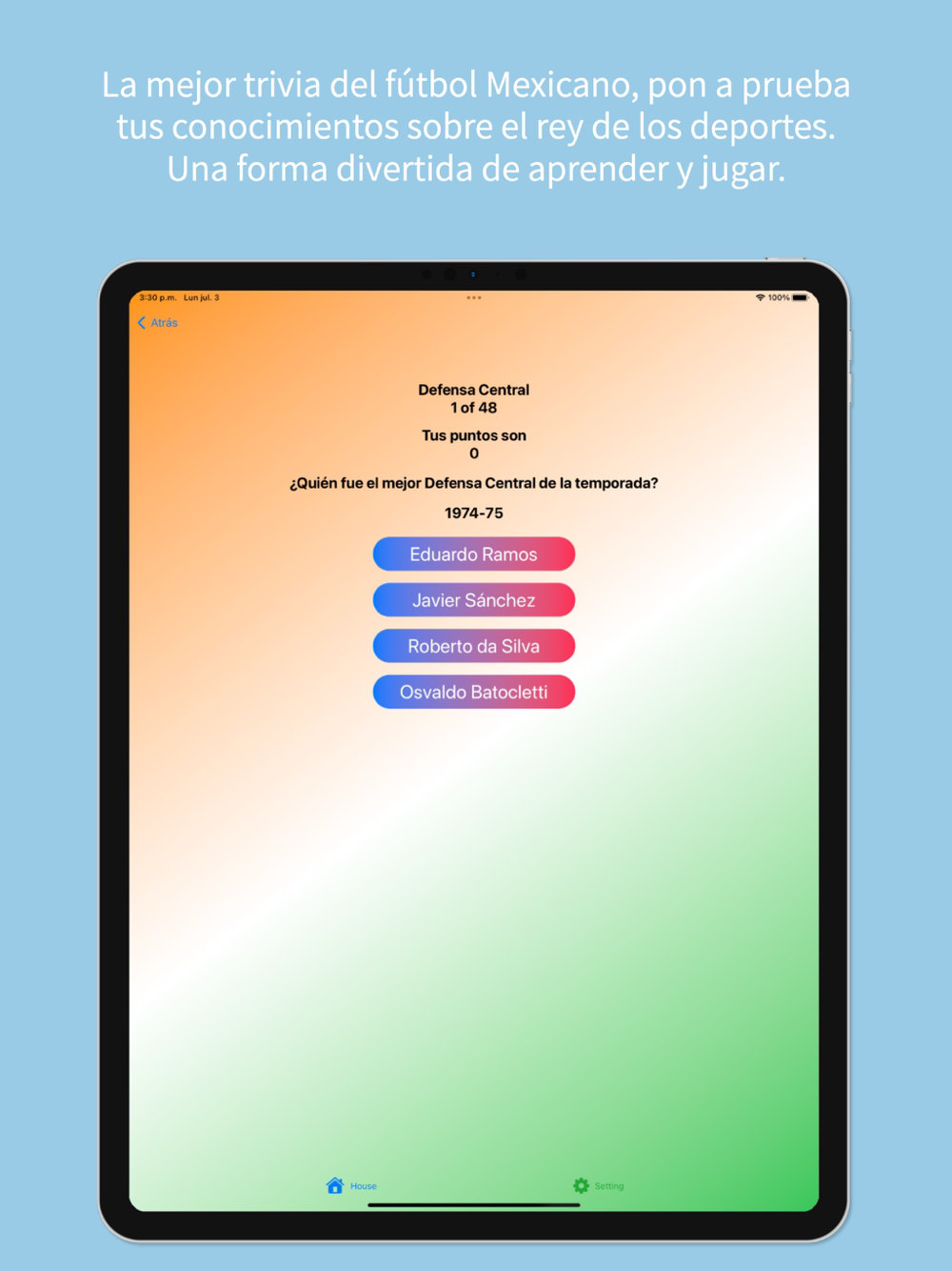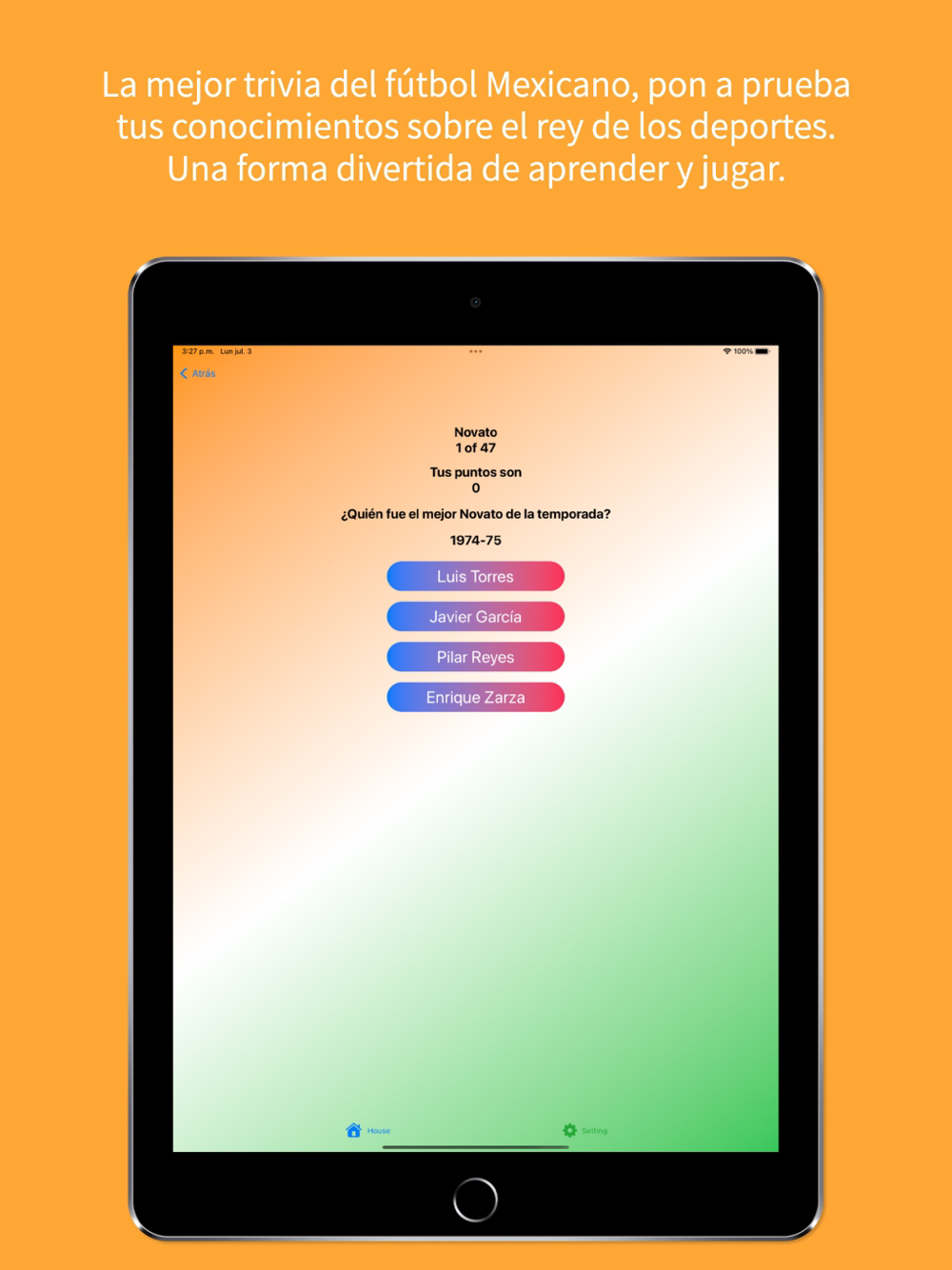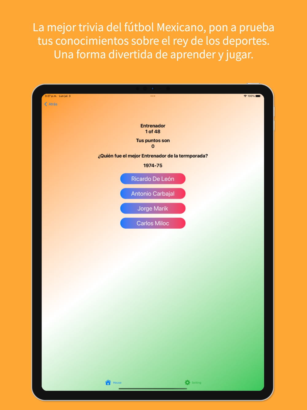 Desafía a tus amigos, familia o incluso compite contra entusiastas del fútbol Mexicano de todo el mundo. Con miles de preguntas alucinantes en varios niveles de dificultad, cada ronda pondrá al límite tus conocimientos de fútbol Mexicano. ¿Estarás a la altura de las circunstancias y te alzarás con la victoria como el campeón definitivo del trivial sobre la mejor liga de fútbol Mexicano?