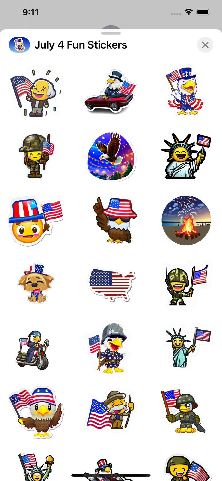 Download "July 4 Fun Stickers" now and dive into a burst of patriotic fun. Express your love for the United States in a colorful and vibrant way with this incredible sticker collection!