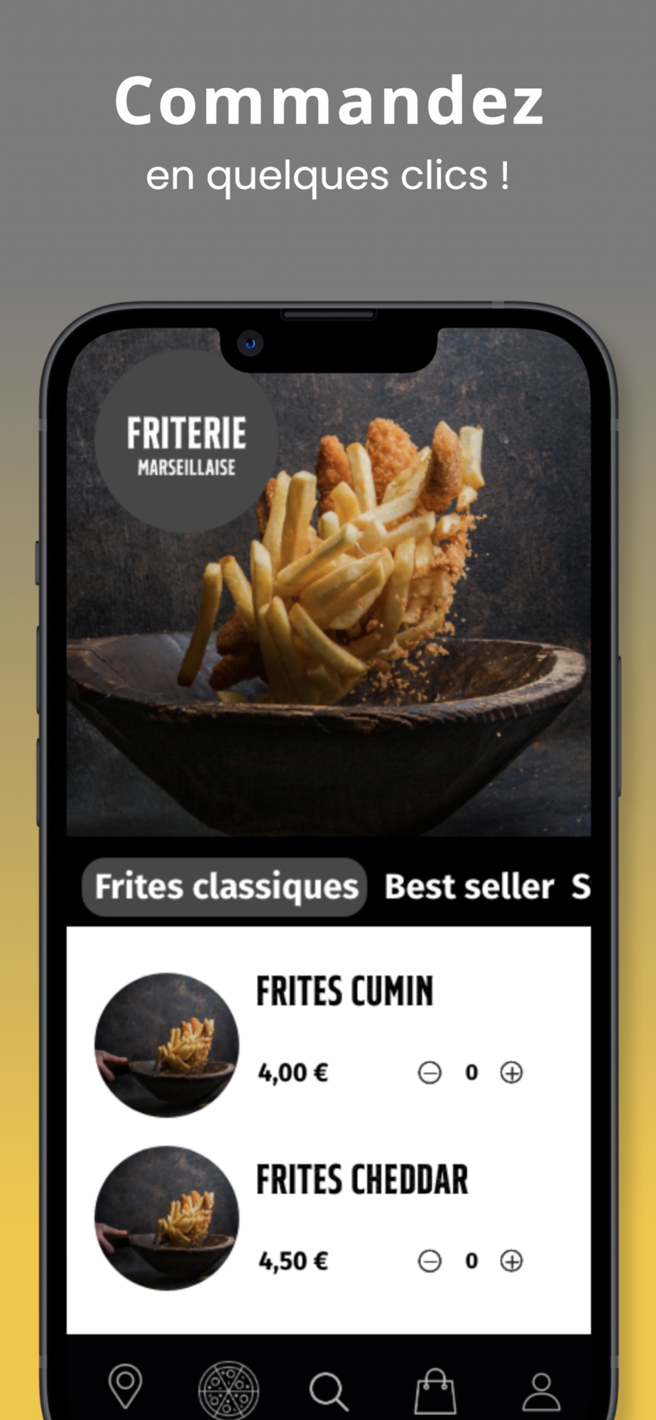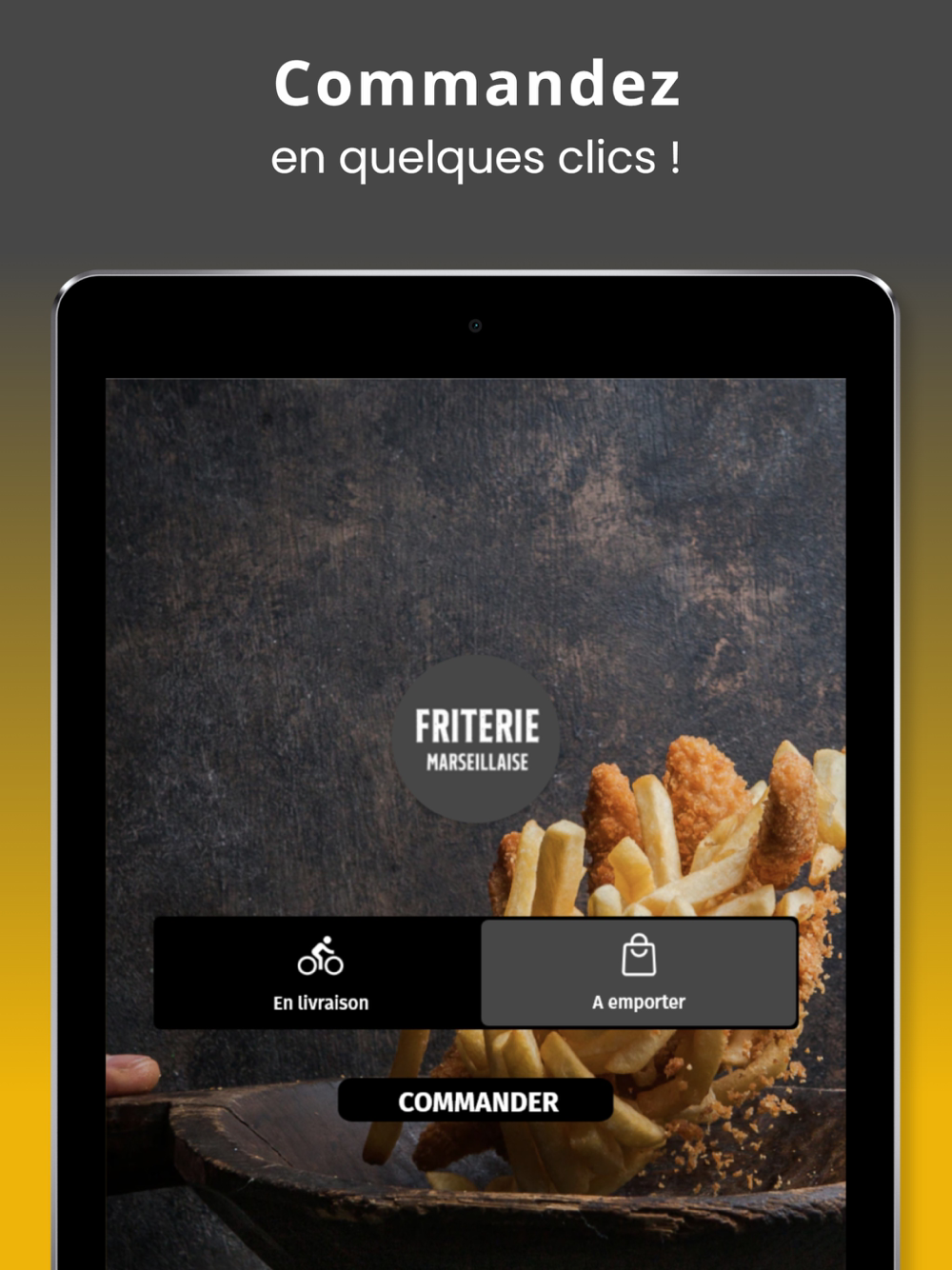 L'application La friterie Marseillaise, c'est le moyen le plus simple de commander nos spécialités ou que vous soyez.