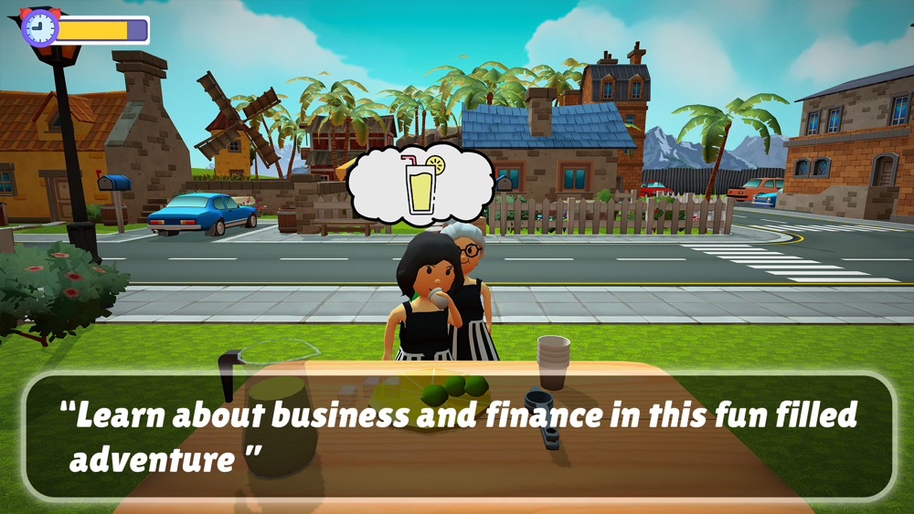 Experience the thrills and challenges on being an Entrepreneur. Follow Kim's journey as she starts a lemonade business and works her way to success. Meet interesting characters on the way and follow their quests. Grow your business and learn to market your product to attract more customers.