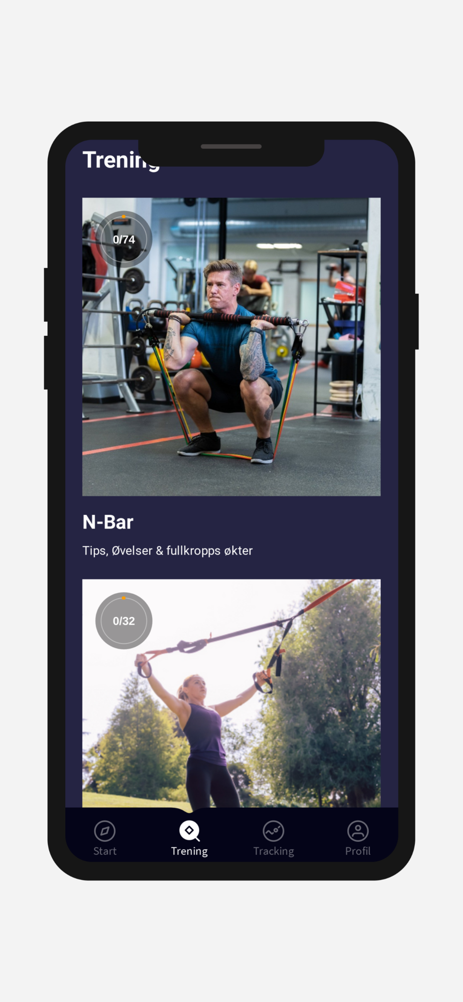 Appen viser øvelser for alle produktene vi selger. Den inneholder også treningsøkter for produktene slik at det skal være enkelt for deg å gjennomføre treninger enten hjemme eller på reise.