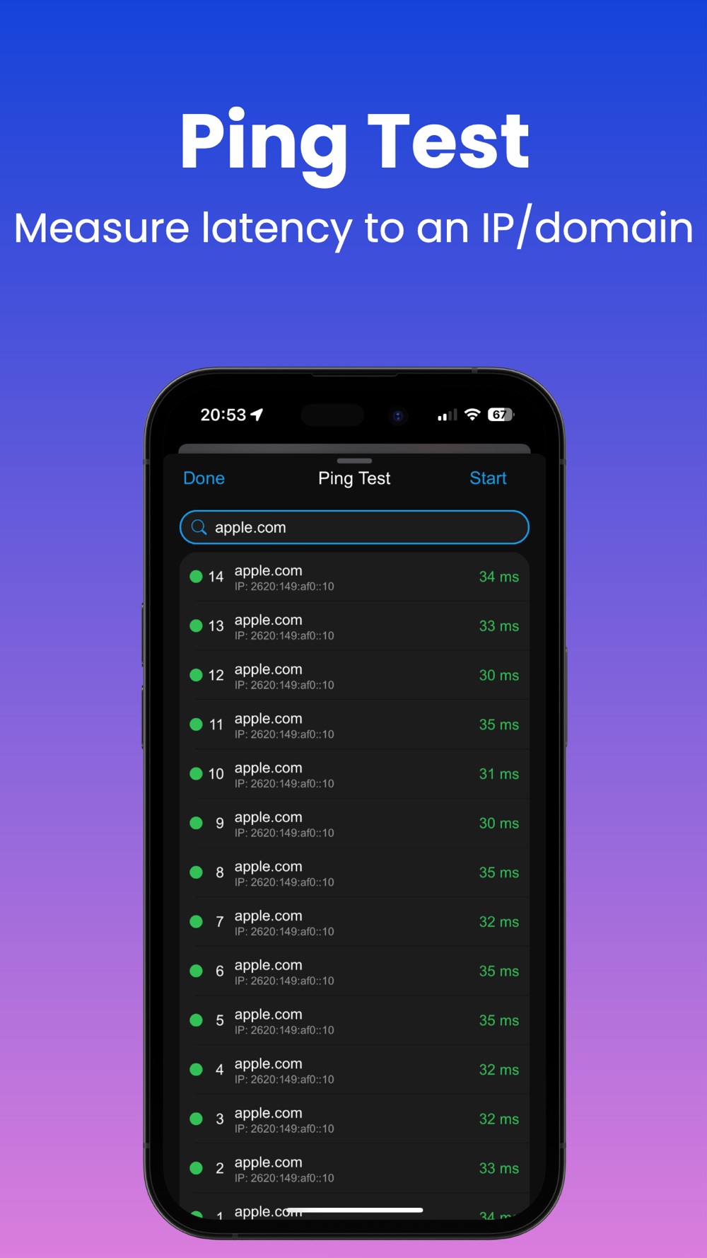 → Ping tool: Measure latency to a domain/IP Address