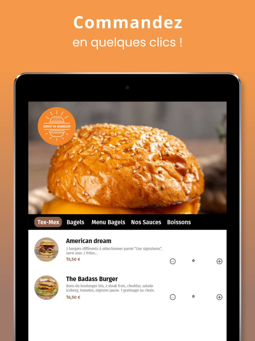 L'application Gratin Burger, c'est le moyen le plus simple de commander nos spécialités ou que vous soyez.