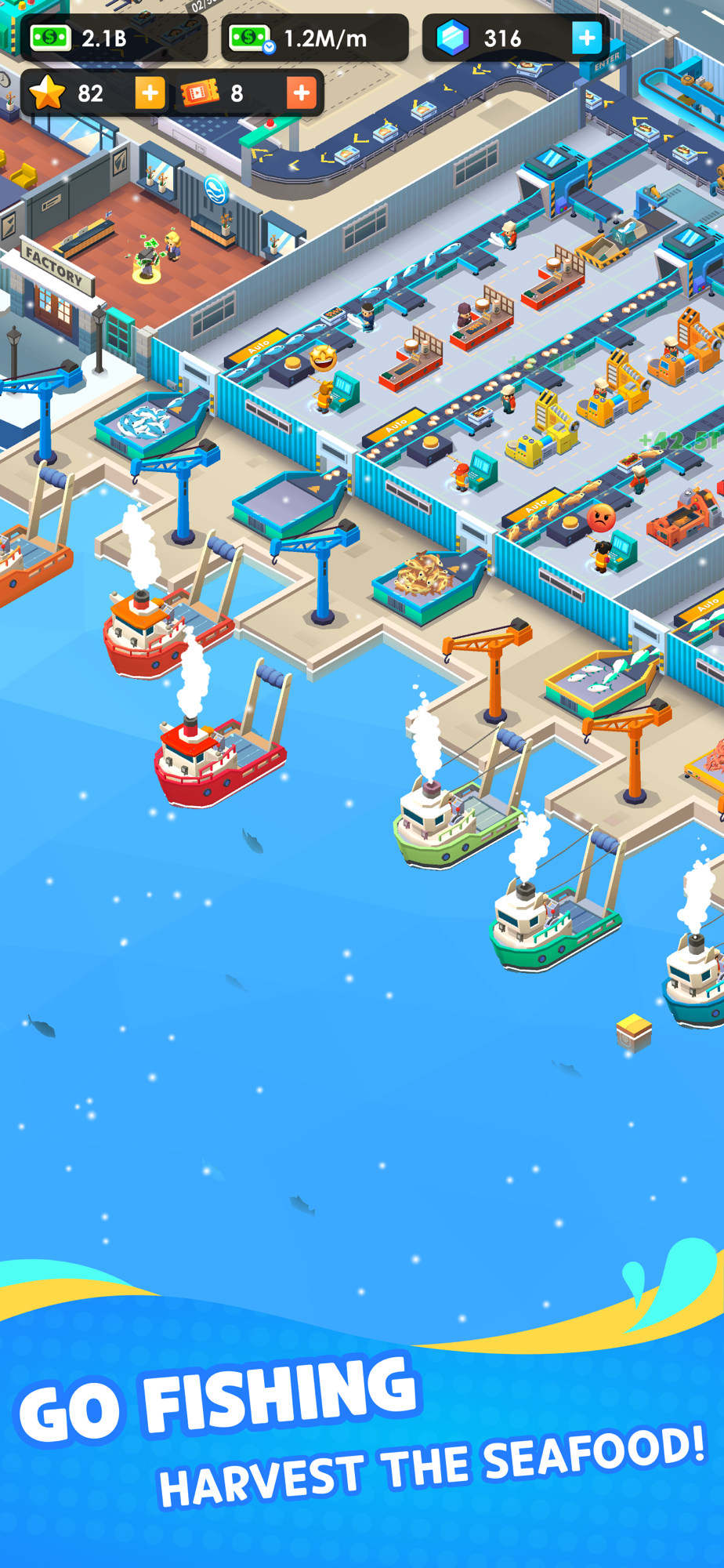 Earn a never-ending income and rewards as the company operates with your acquired machinery and staff. For every effort you make, there is a reward. Rewards can be in cash, stars, diamonds, etc. Use them to make upgrades, manage fish products and build your dream seafood empire.