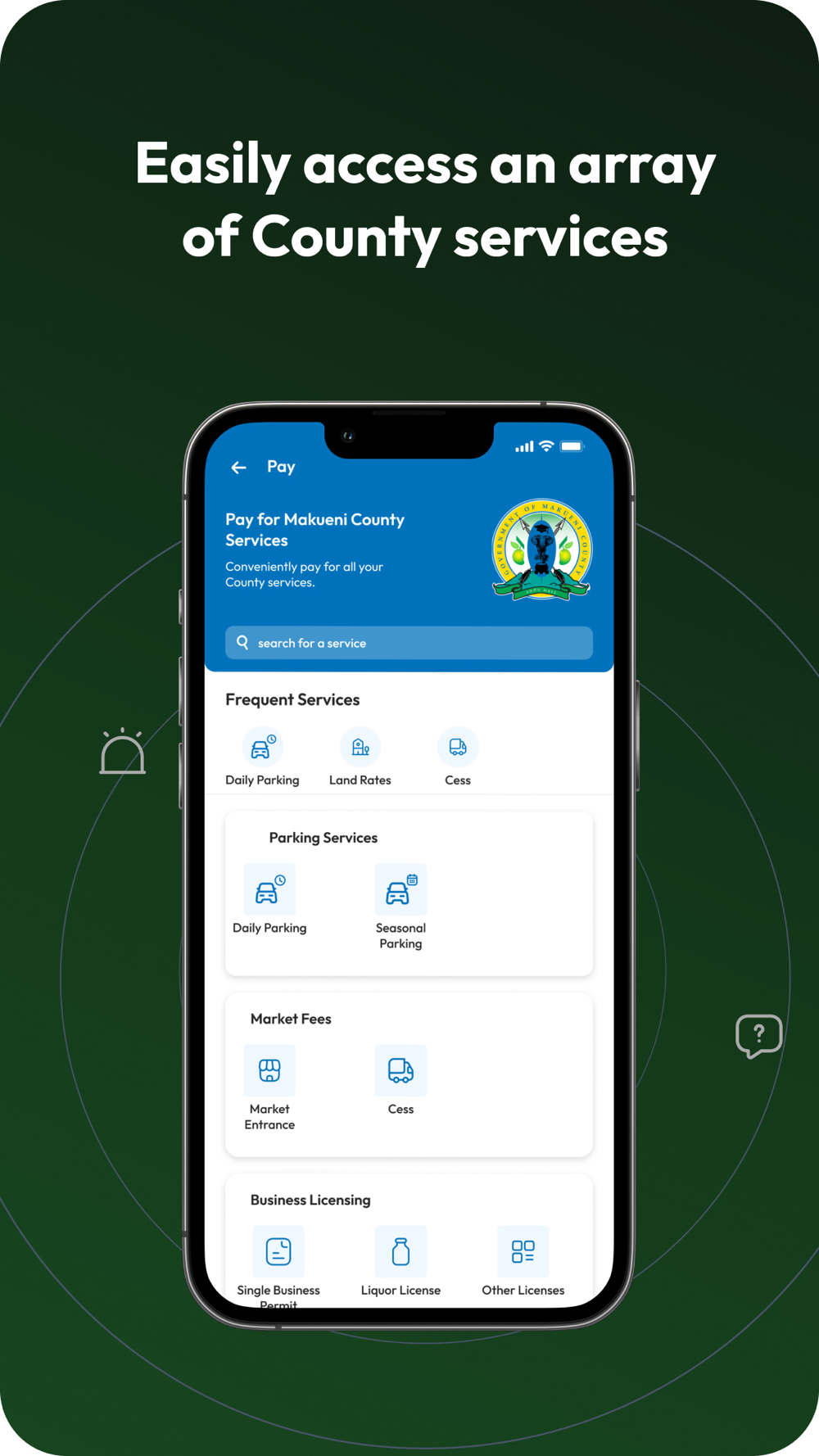 1. Standardized Experience: Through MyCounty app channel as a single point of entry, users will have access to their resident county features such as paying for county services including but not limited to parking, single business permits, land rates and market cess fees among others.