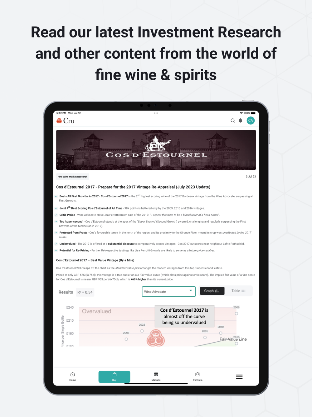 The Cru World Wine app is designed to be your ‘one stop shop’ fine wine & spirits platform, in your pocket!