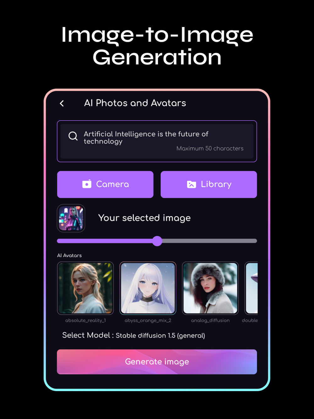 AI Art Generator uses artificial intelligence to create unique and beautiful works of art, inspired by your own creativity. With just a few taps, you can turn your thoughts into reality, creating stunning, ready to use images and make your life easier.