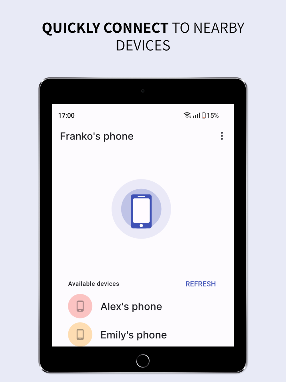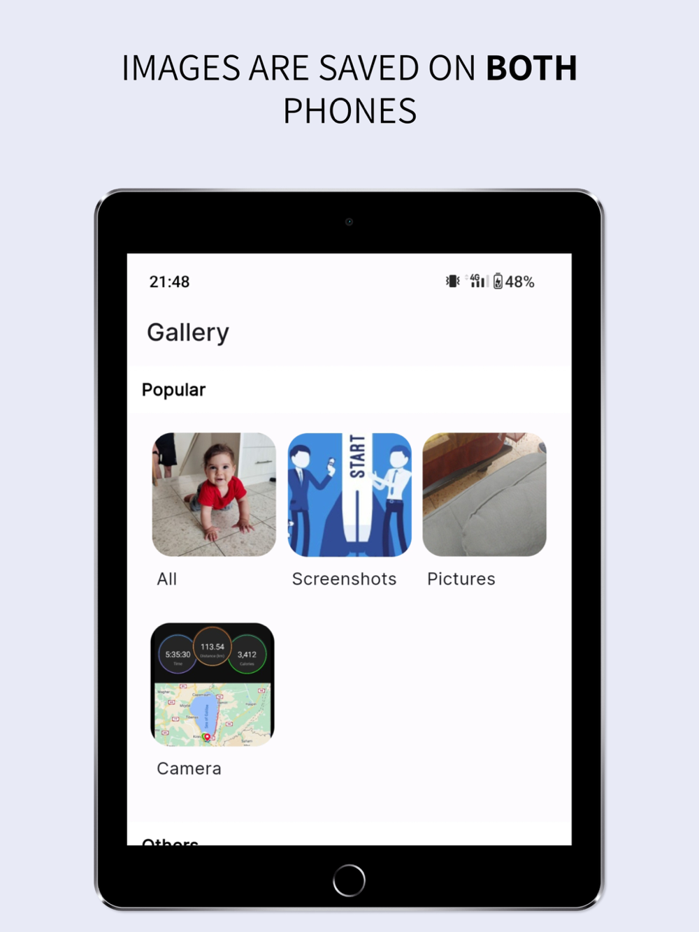 Connect to any device and take photos remotely from up to 300 meters away. Simply position one phone in a remote place and control it's camera with the other phone as a remote. No internet connection is needed. You can preview the shot in real time.