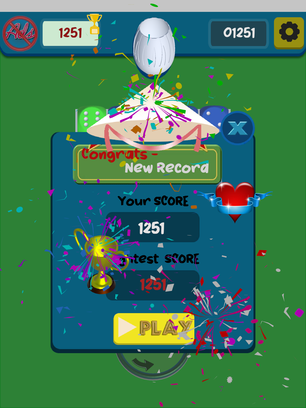 - Play on 5X5 tiles board. Each tile you can only put one dice.