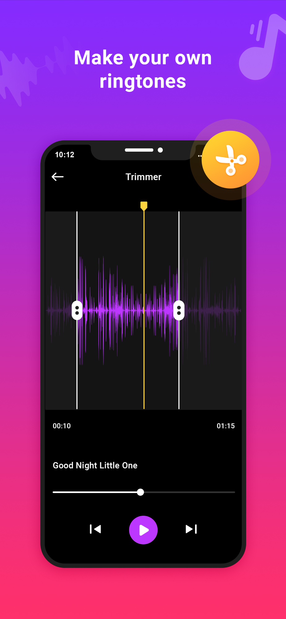 Make your own MP3 ringtones fast and easy with this app. You can even record a live audio and this MP3 editor can edit and trim the best parts from it for free. Supports MP3, WAV, AAC, AMR and most other music formats. This app is also a music editor/alarm tone maker/ ringtone cutter and notification tone creator.