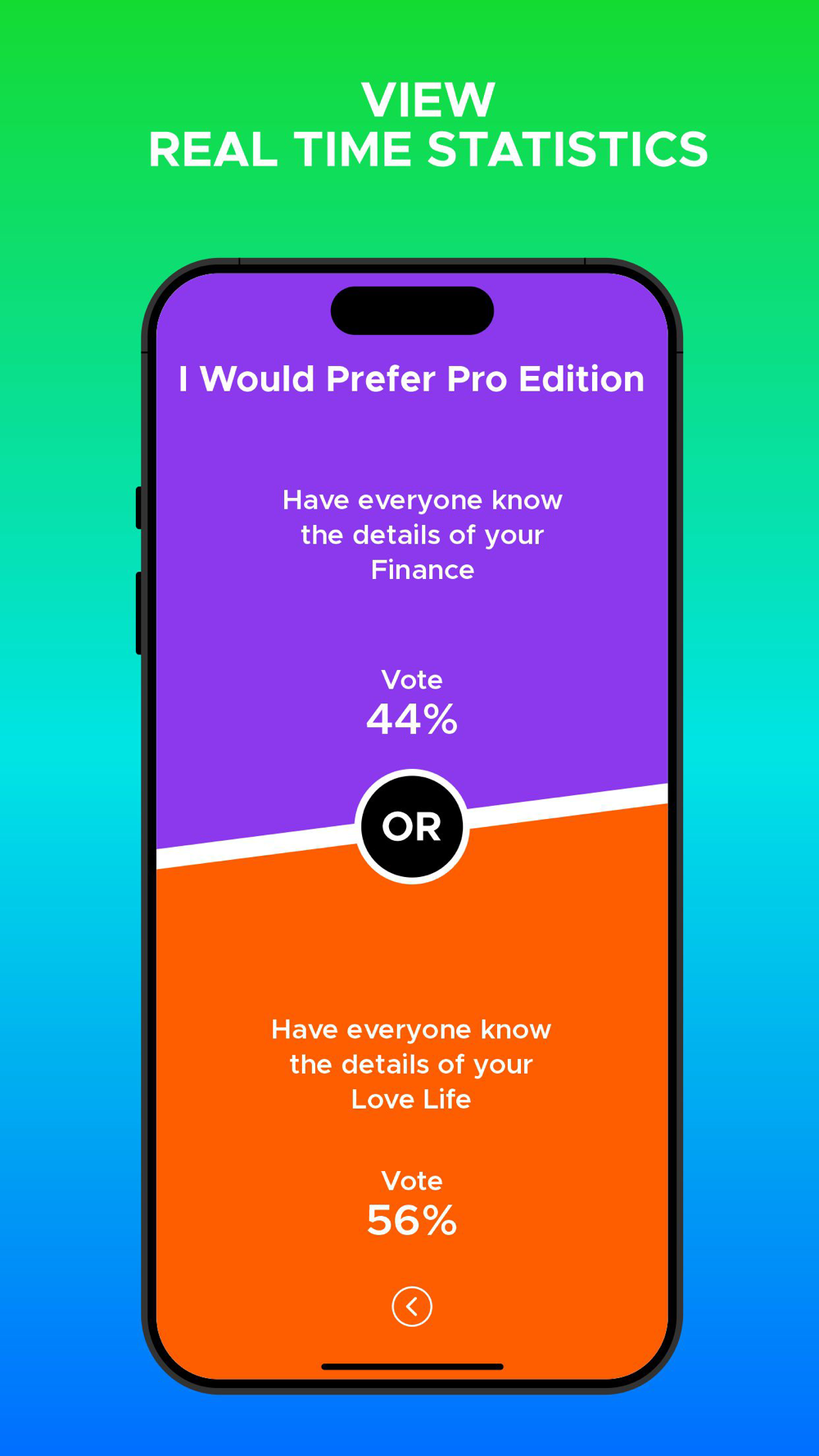 Introducing "I Would Prefer Pro Edition" – the ultimate app for endless fun and entertainment! Gather your friends and family and get ready to dive into a world of intriguing questions and thought-provoking choices.