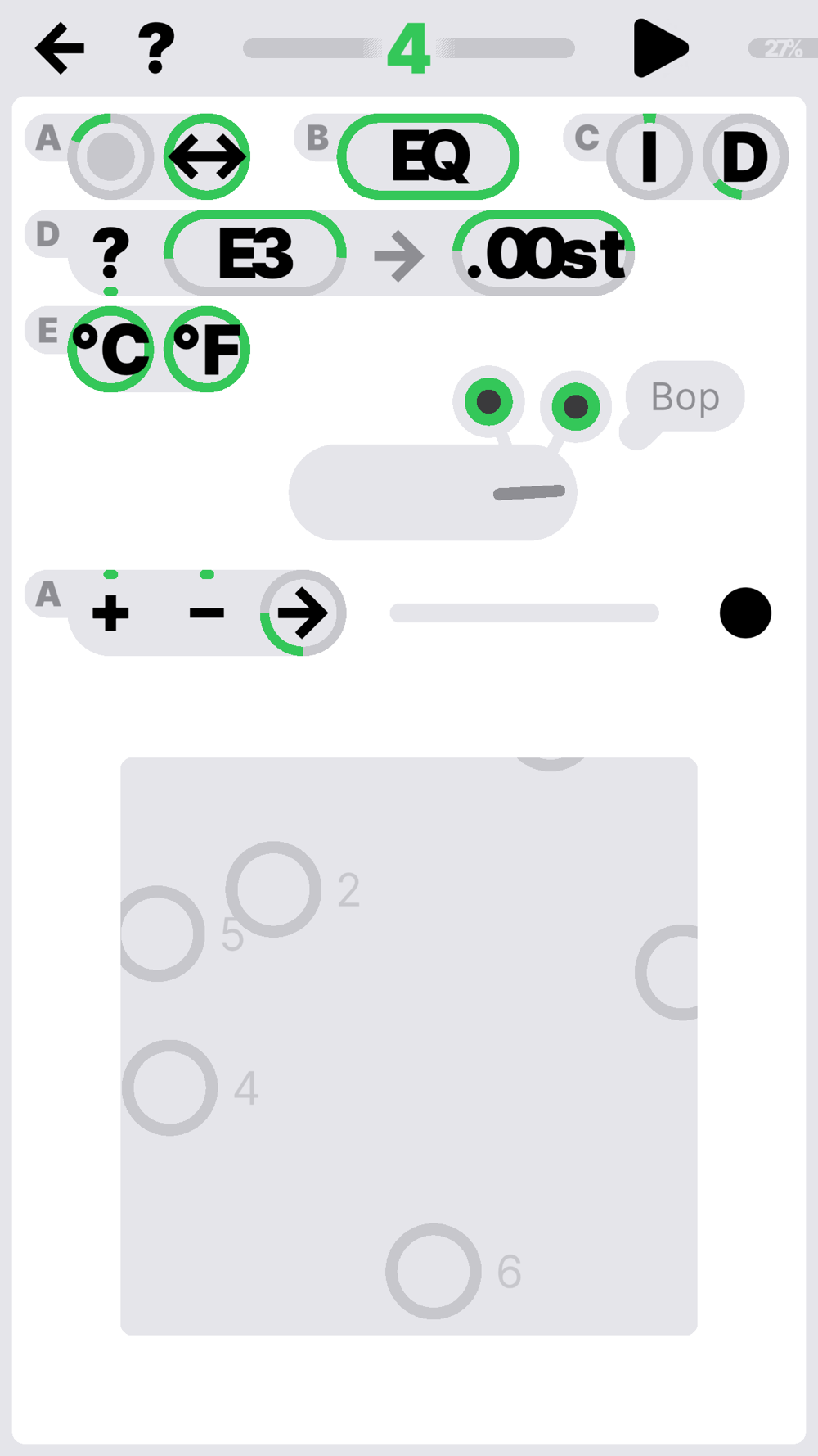 Use Andie's quirky, random nature to find sounds and rhythms you like.