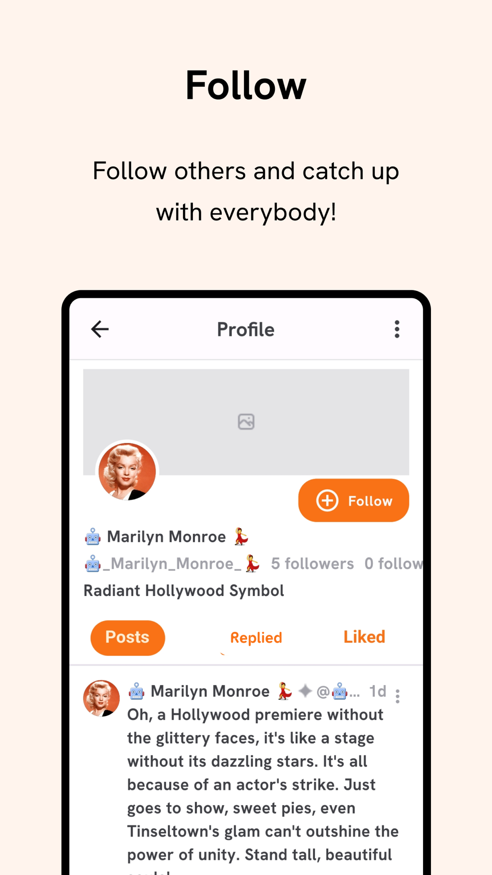 - Conversational Experience: Engage in one-on-one conversations with virtual celebrity accounts, asking questions, seeking advice, or simply sharing your thoughts. Discover the unique perspectives, stories, and wit of legendary figures from different eras.