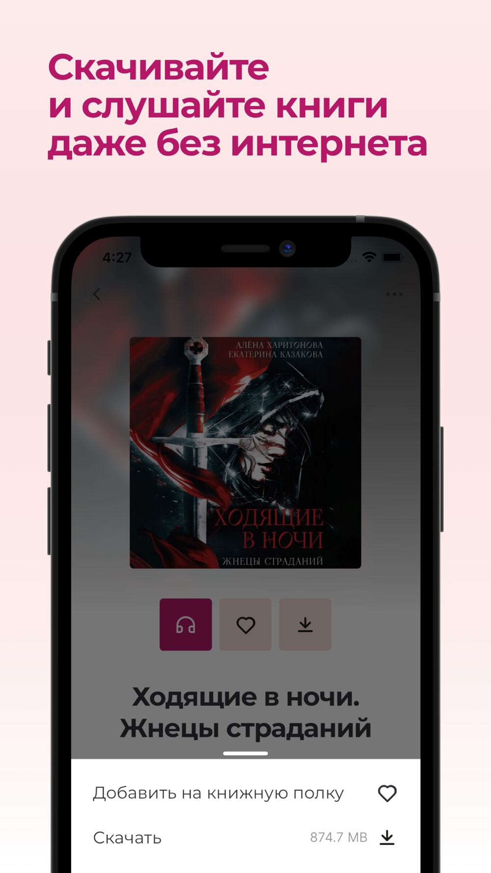 - Офлайн-доступ, чтобы слушать аудиокниги без интернета
