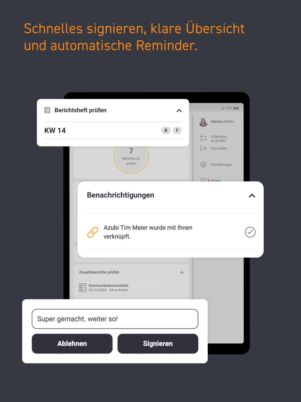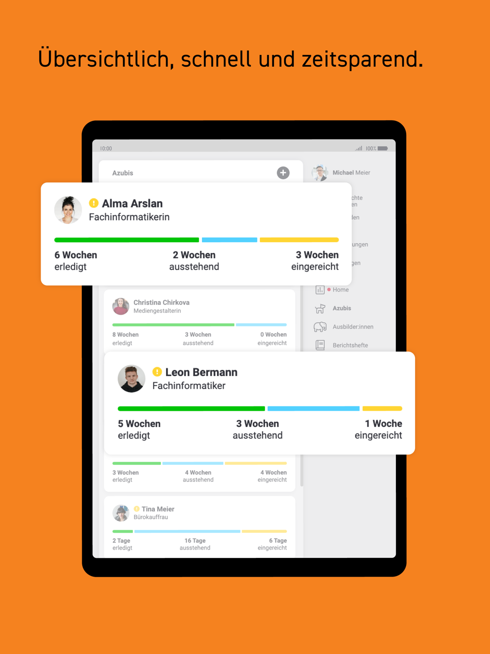Das Team wird begeistert sein! Die Azubi-App ist ein sofort nutzbares und beliebtes Tool, um die Ausbildung und die Abläufe im Betrieb attraktiver und effizienter zu gestalten – online am PC und als App.
