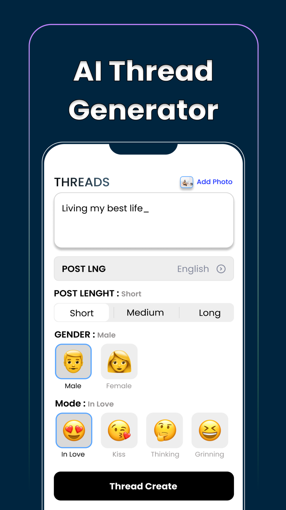 • Image-Driven Post Generation: Let your images inspire your posts! With Thread Maker, you can generate posts and captions that are perfectly tailored to each image. Our app analyzes the visual content and generates contextually relevant text, ensuring your thread tell a compelling story.