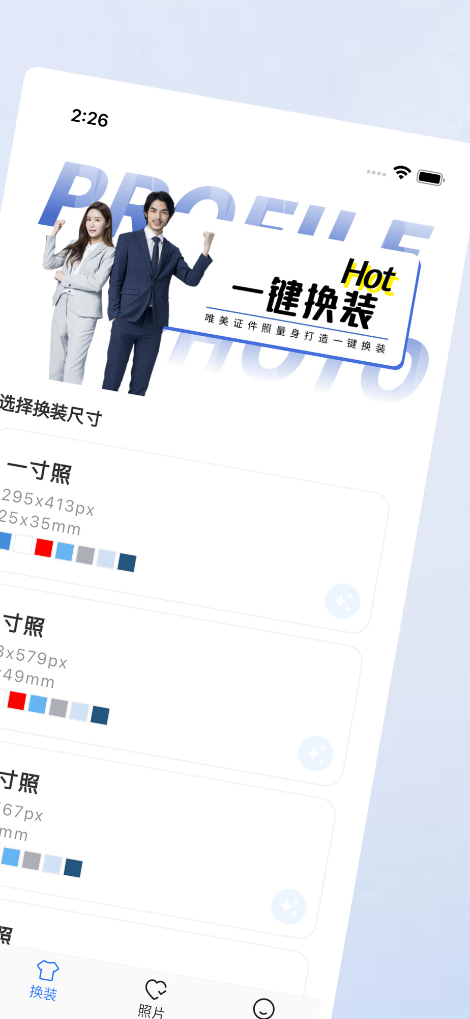 《证件照换装》:没有正装也不用苦恼,一键换正装,为您提供贴合的换装服务。