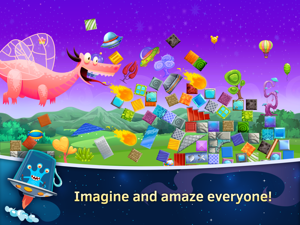 Any of the seven planets will please with its unique environment: you may build on the ground and in the water, on the clouds or even on candies!!! Bricks and blocks can easily stand, float, scatter or stick to each other...
