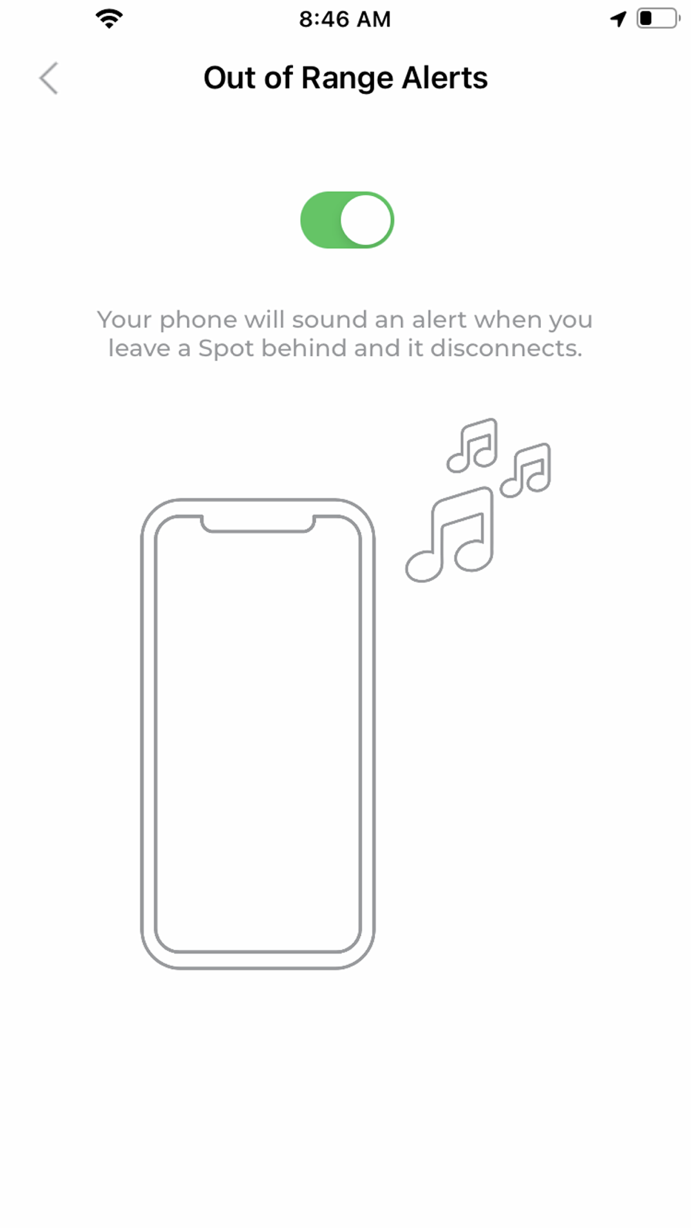 If this feature is enabled, your phone can notify you each time your phone and Spot get separated. This feature can alert you before you accidentally leave an item behind.