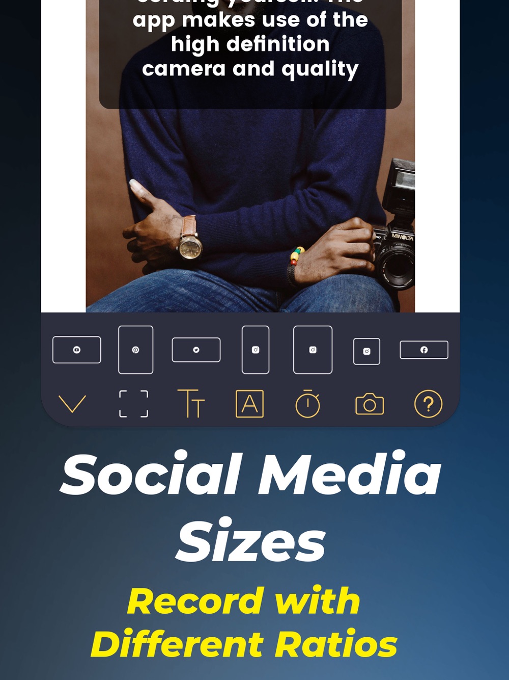 -Record video with different social media sizes or with different aspect ratios (only available in this teleprompter app)