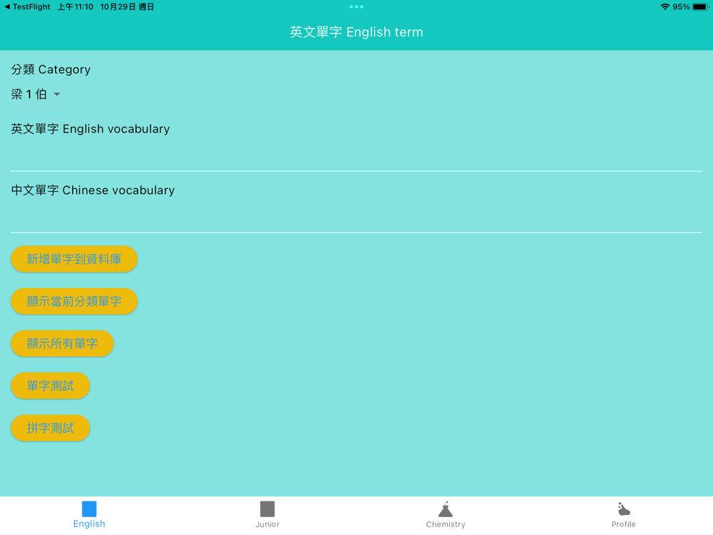 4. 出填充題幫你複習單字 (顯示一個中文單字,與手動輸入英文單字)