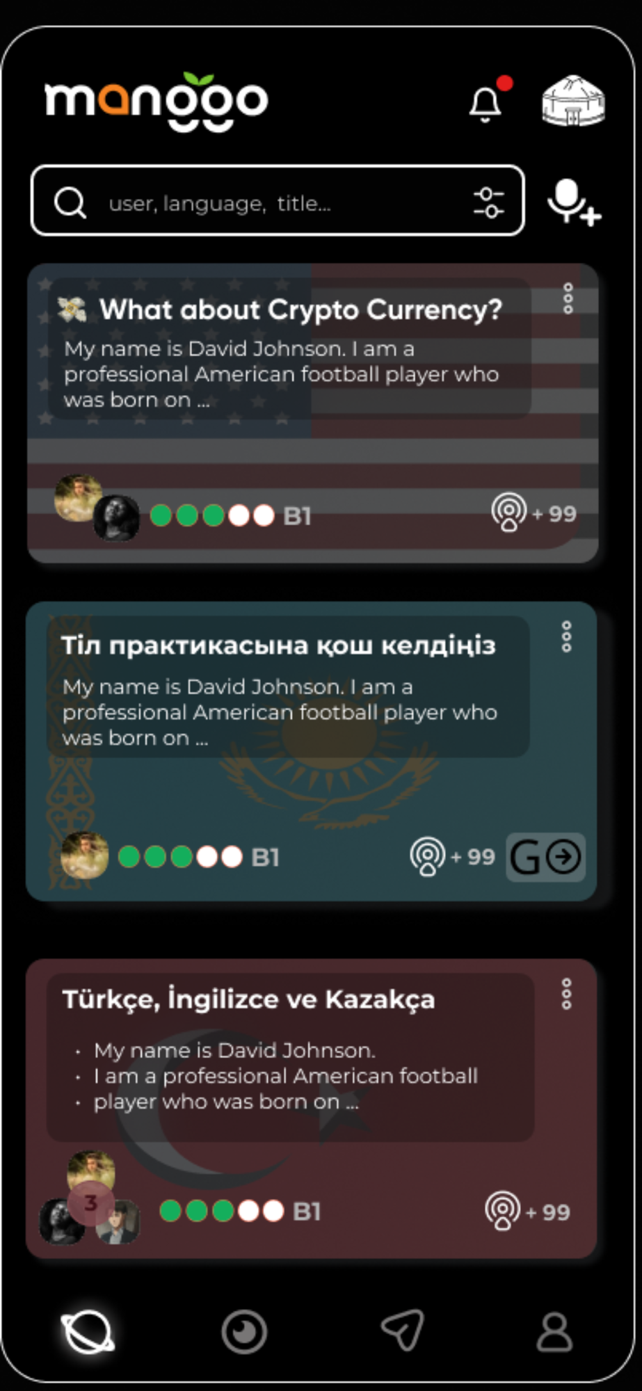 Discover the ultimate language exchange and learning platform, Manggo. Embark on a social journey to learn a new language in an immersive way, engaging with native speakers in diverse audio chatrooms. By conversing with locals, you will not only enhance your language skills but also delve into foreign cultures, mastering local pronunciation and everyday expressions.