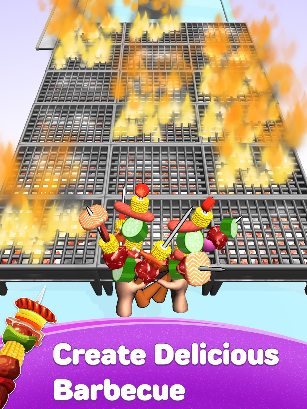 "Embark on a culinary journey, shoot food onto skewers, cook to perfection, and earn rewards. Are you up for the challenge of becoming the ultimate Grill Runner?"