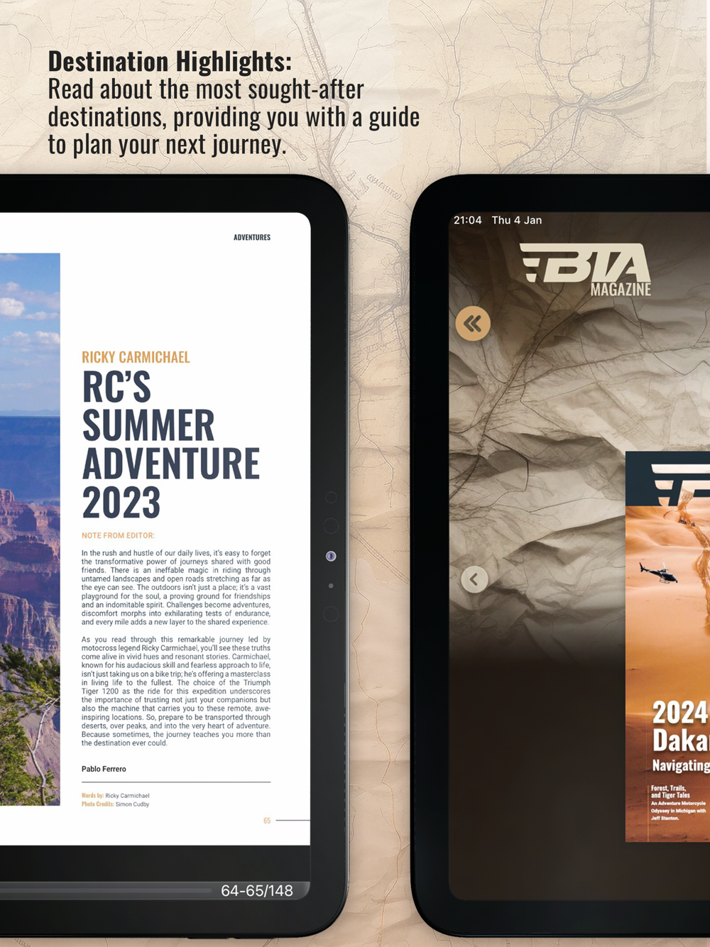 Welcome to the ultimate mobile destination for motorbike enthusiasts - the BTA Magazine app! Dive into the heart of motorbike travel and adventure with our exclusive digital magazine access.
