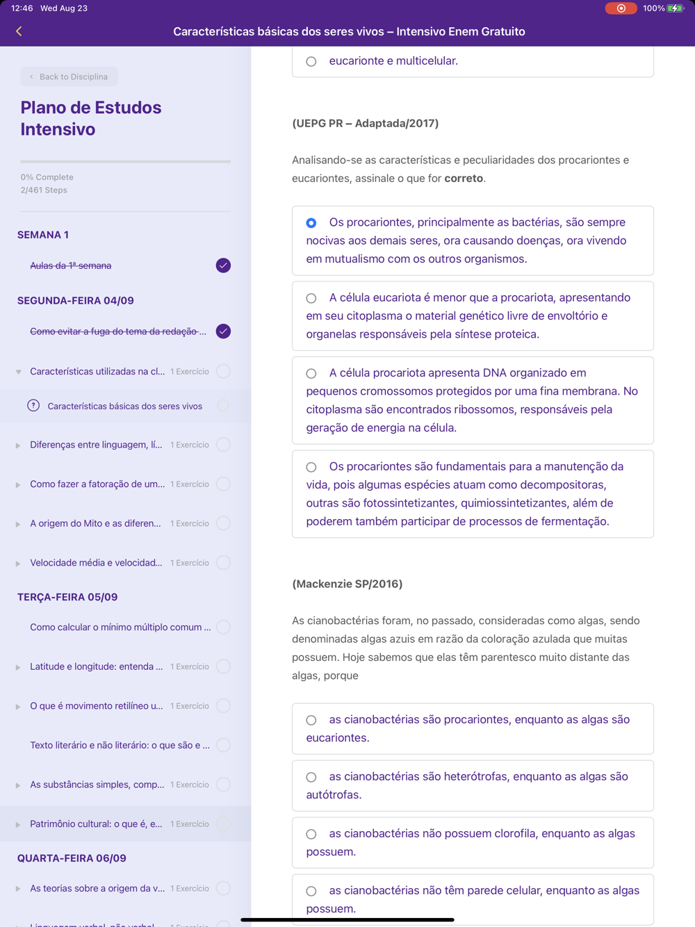 Agora você pode mandar bem nas provas com as dicas do Intensivo Enem. Confira os temas que mais caem de Matemática, Química, Física, Biologia, Linguagens e de todas as matérias de Ciências Humanas também. Aqui você têm aulas em vídeo, resumos, listas de exercícios e simulados organizados numa trilha de aprendizagem organizada dia a dia. Você escolhe o seu ritmo de estudos. Tire suas dúvidas e resolva os exercícios para se garantir nas provas objetivas e no texto dissertativo-argumentativo da redação do Enem.