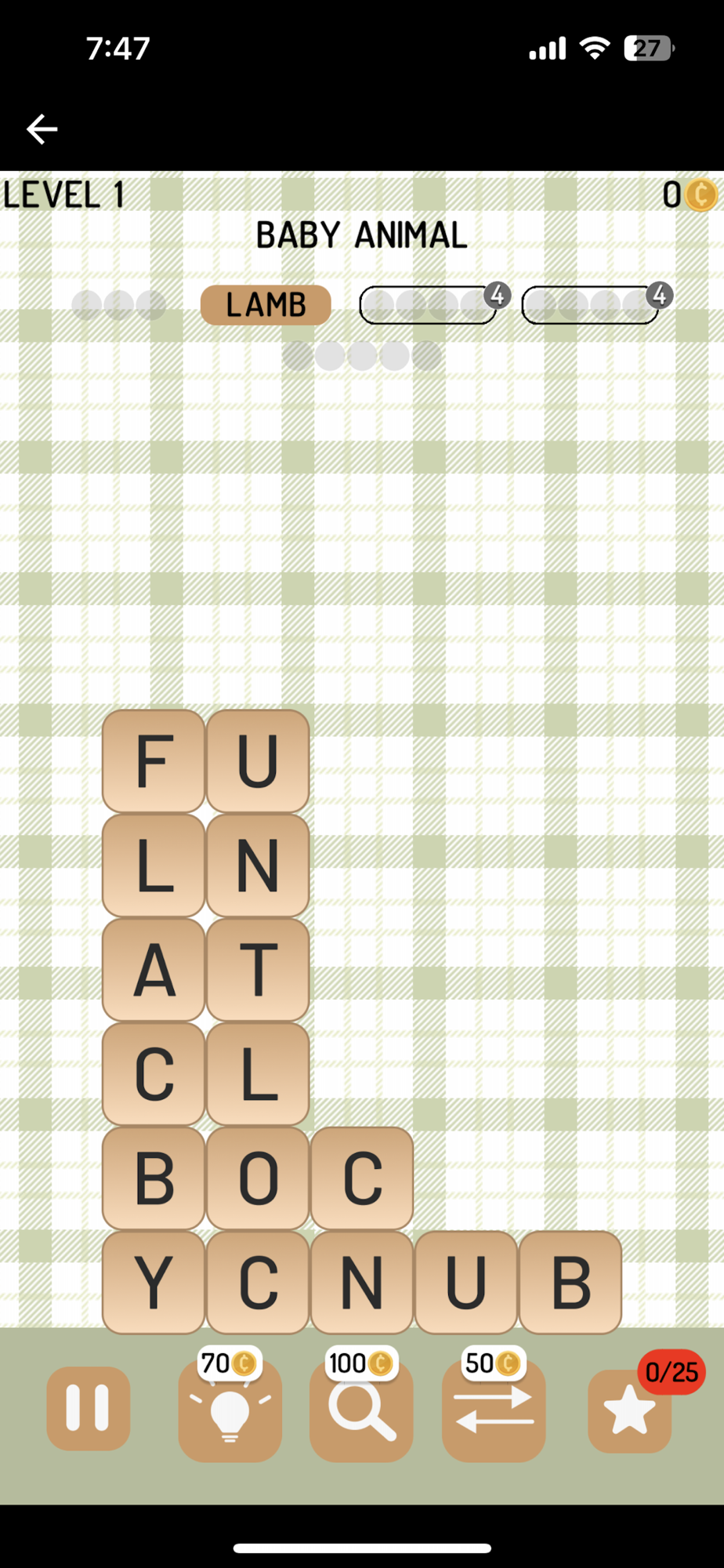 The game has a variety of different spectrums, including Animals, Food, Sports, and Places. As you progress through the game, the words will become more difficult to form.