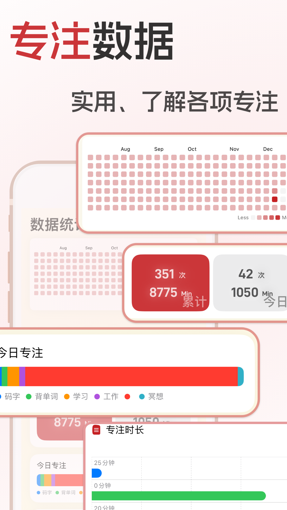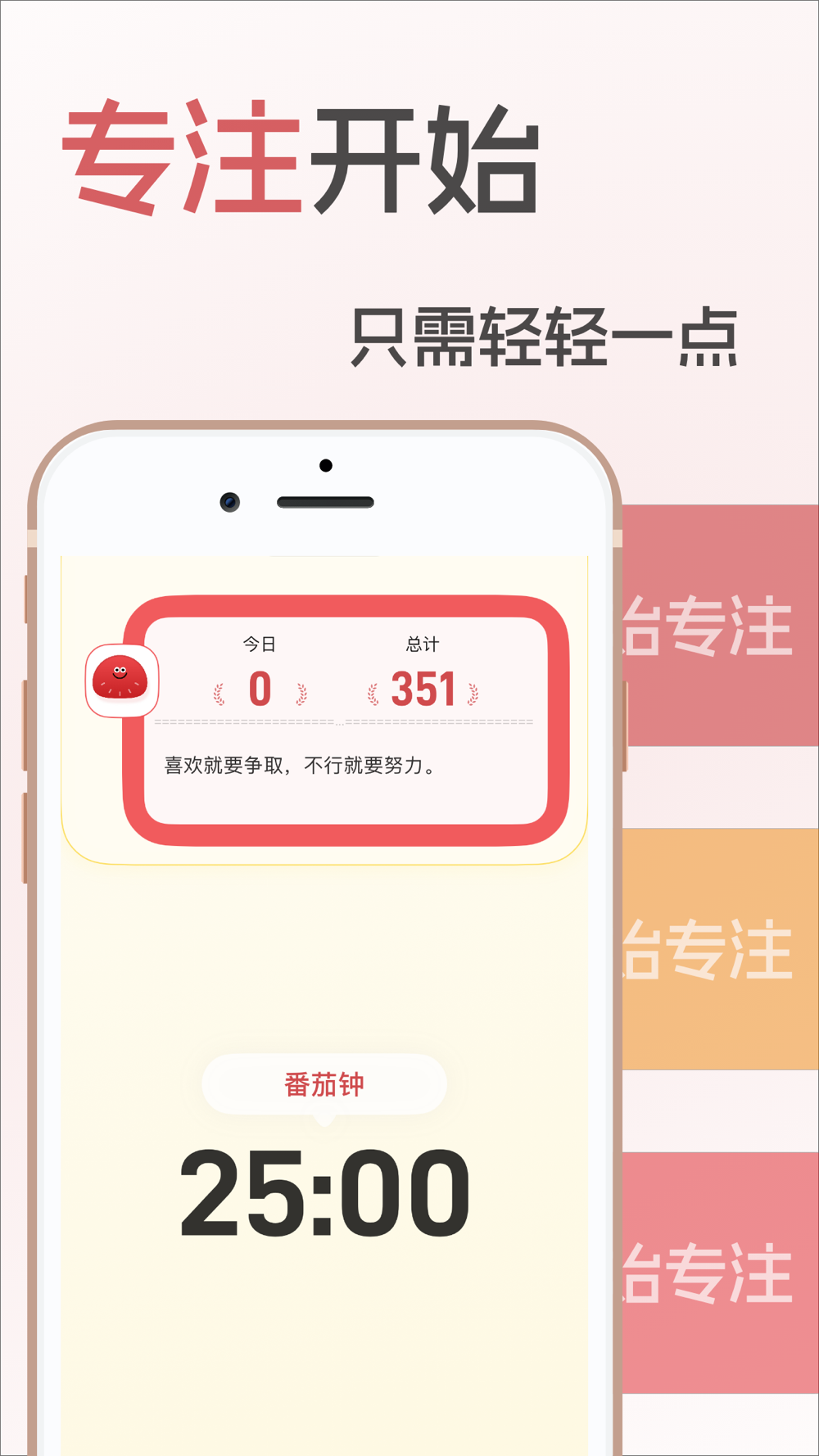 1.通过番茄钟提升自我的学习,工作效率。稳步提升自律。