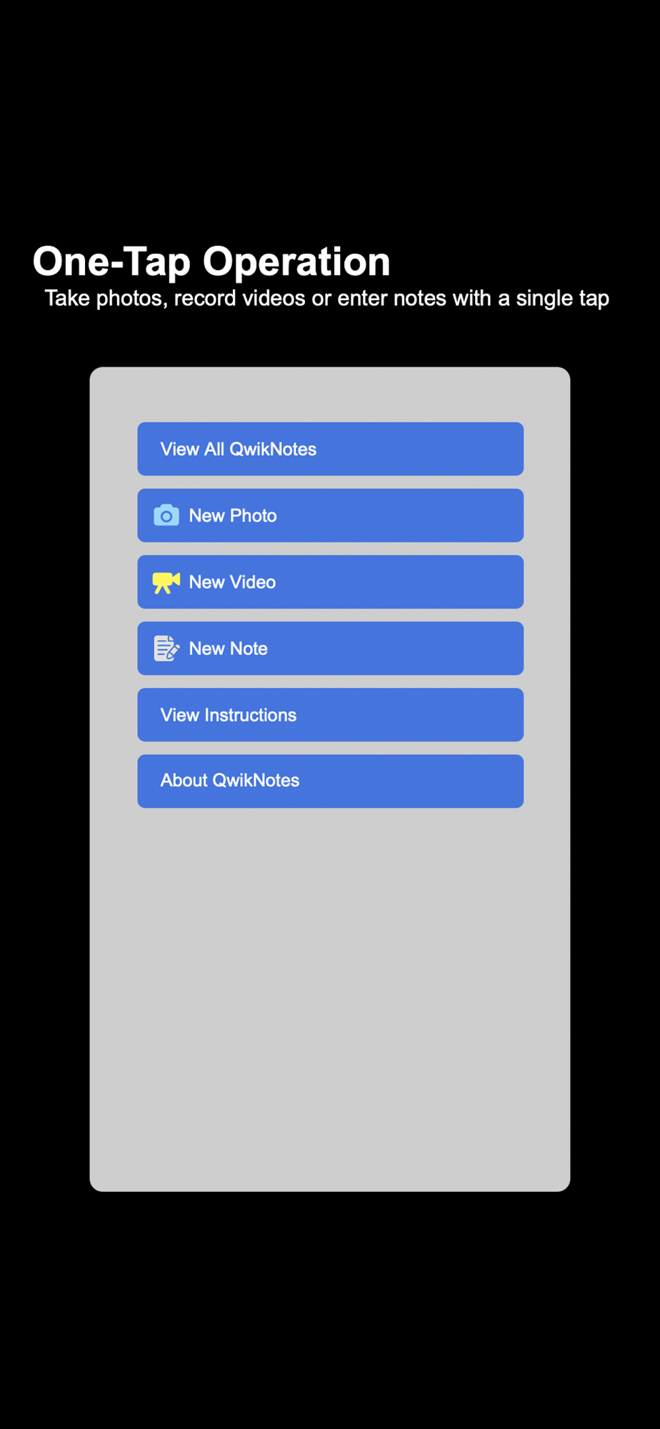 One-Tap Operation: Take photos, record videos, or enter notes with a single tap.