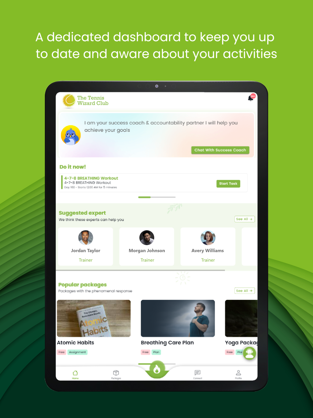 The Tennis Wizard Club app is a platform for tennis coaching and clubs.