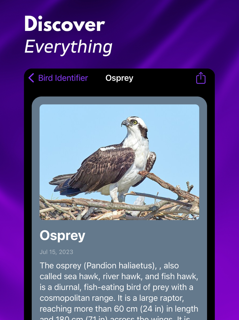Bird ID: Identify Birds is the ultimate go-to app for identifying and learning about the diverse world of birds. Expand your understanding of the fascinating creatures that grace our skies and unleash your inner ornithologist. Download Bird ID: Identify Birds today and embark on an educational and captivating journey into the realm of birds.
